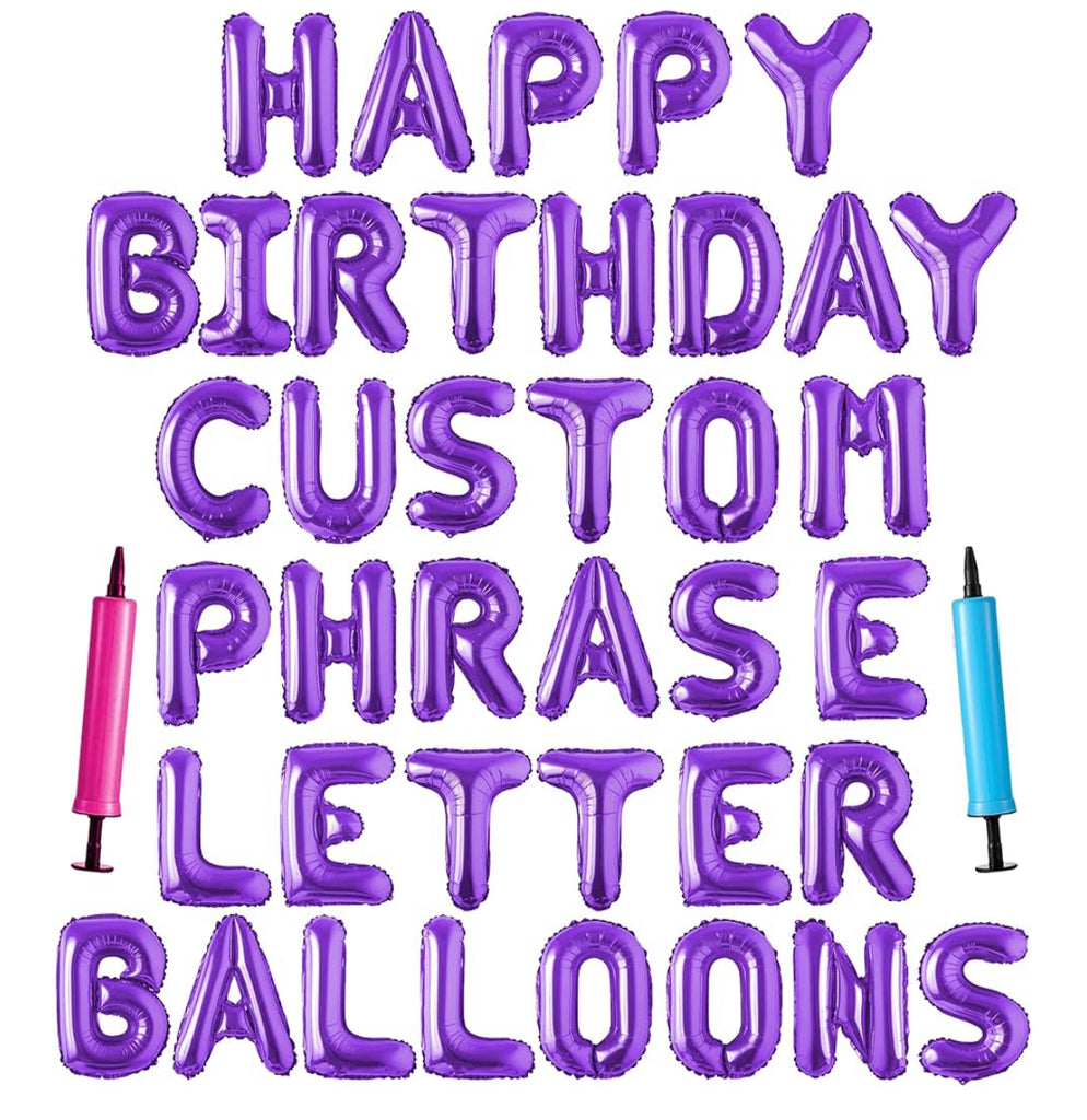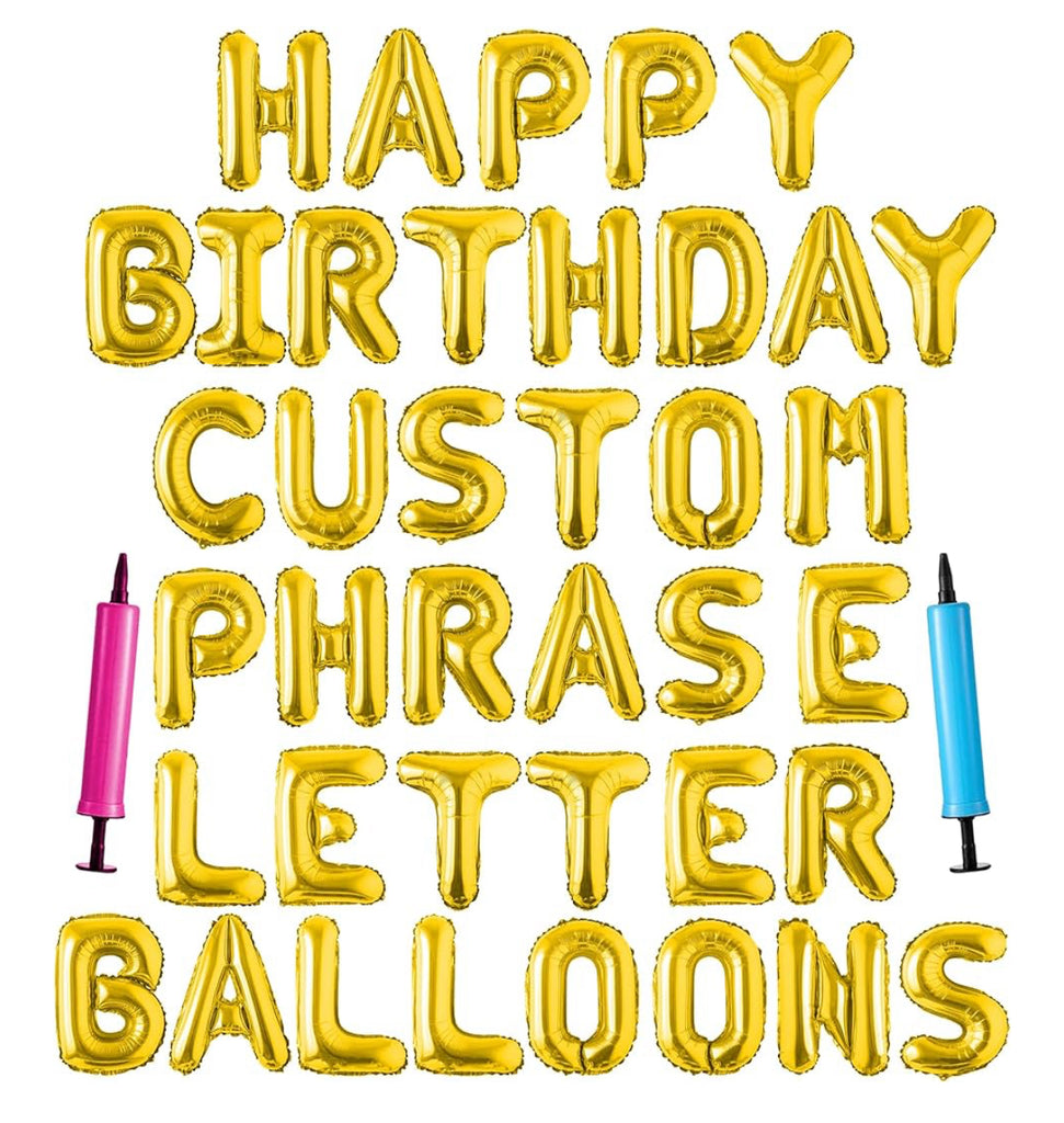 The cutest letter balloons for your perfect bed party! Includes 2 of each letter, 1 set of numbers, ribbon, glue dots, a straw, and 2 balloon pumps. Letters are 16 in tall
