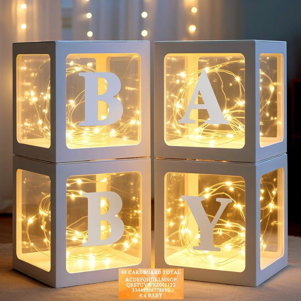 The cutest letter boxes for your perfect bed party! Includes transparent boxes, white letters, and with or without LED lights!
